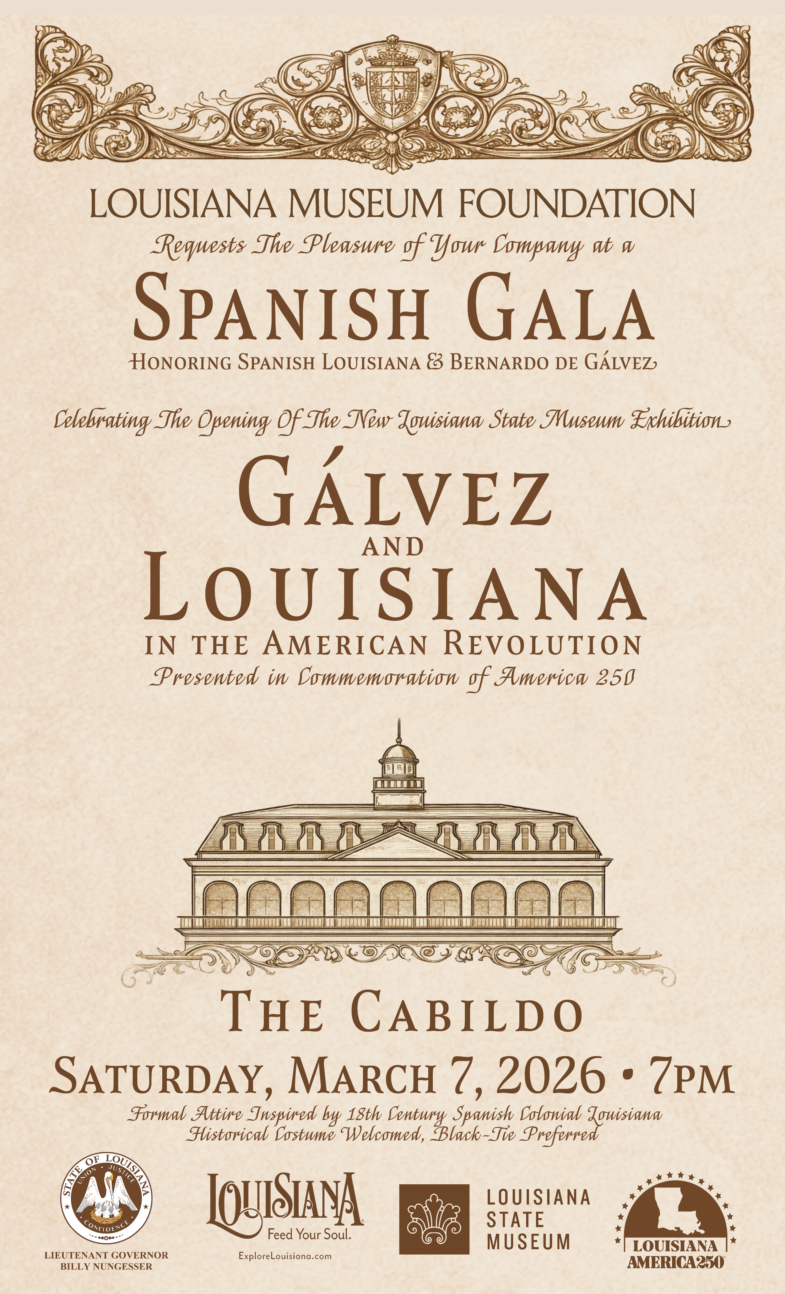 Louisiana Museum Foundation Requests The Pleasure of Your Company at a Spanish Gala Honoring Spanish Louisiana and Governor Berndardo de Galvez , Celebrating the Opening of the Louisiana State Museum Exhibition “Galvez and Louisiana in the American Revolution” Commemorating America 250